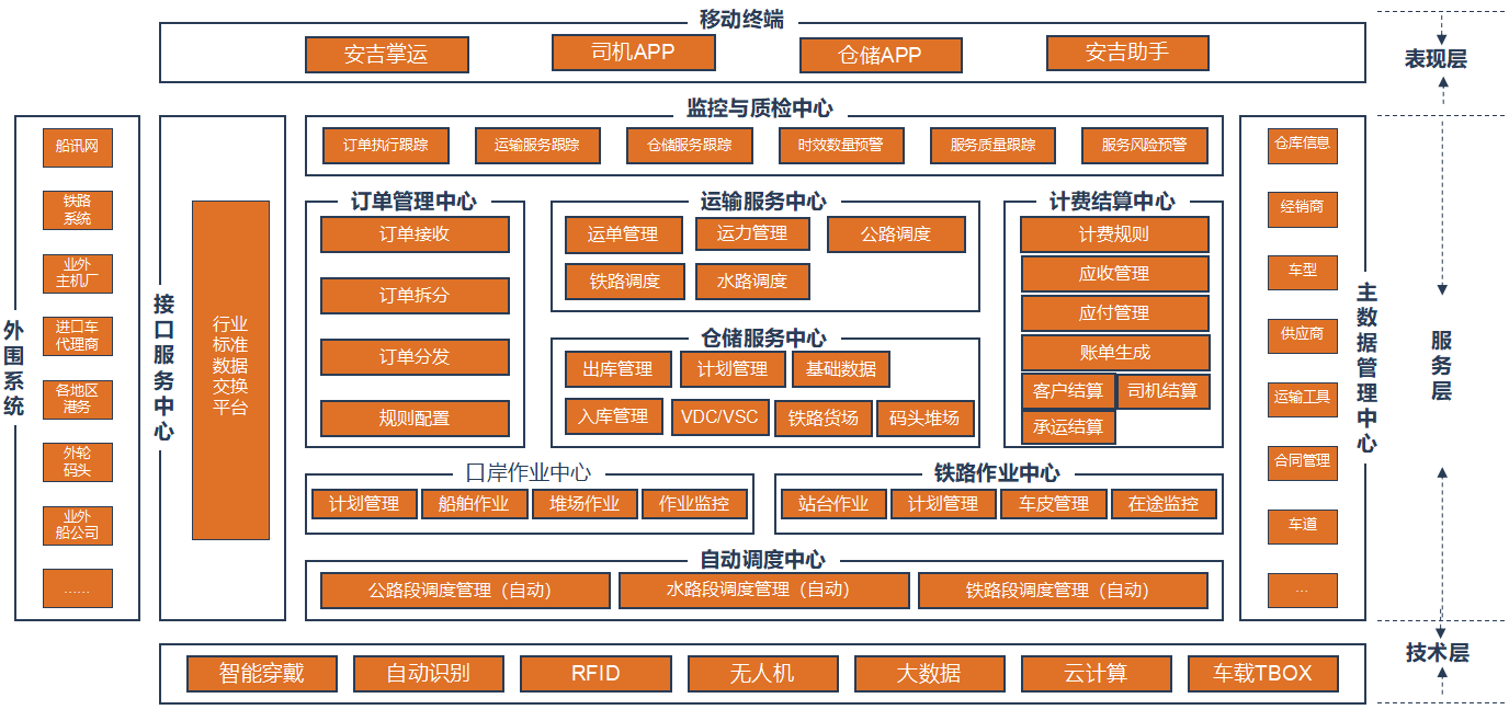 通过IT赋能及新技术应用,建设基于公、水、铁运输模式下的信息化整体方案,实现产、供、销全流程的业务管控;